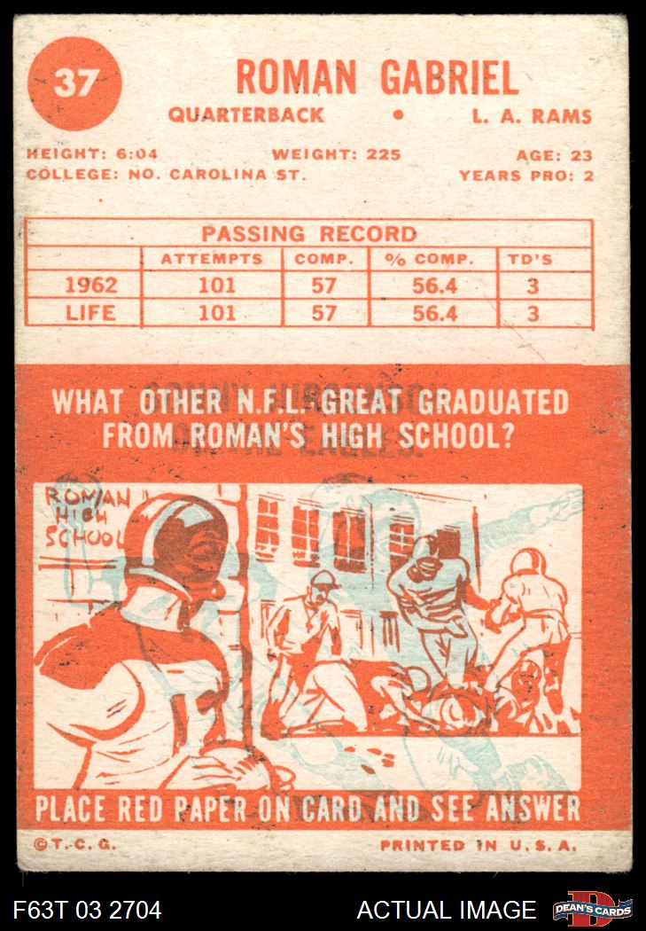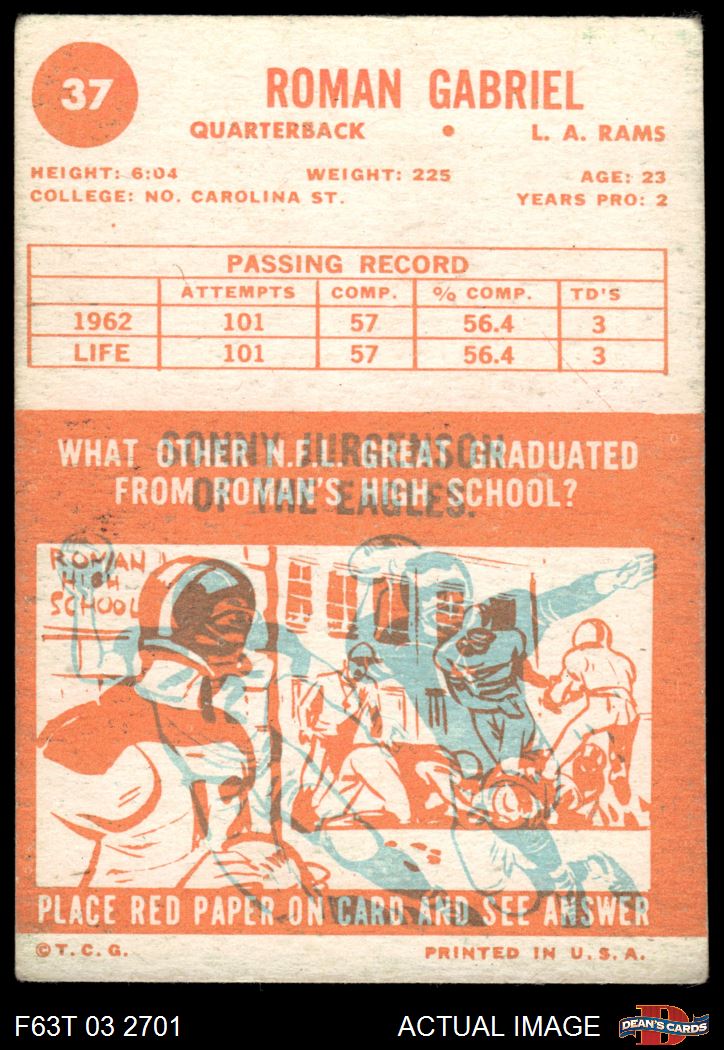 1963 Topps #37 Roman Gabriel 4 - VG/EX