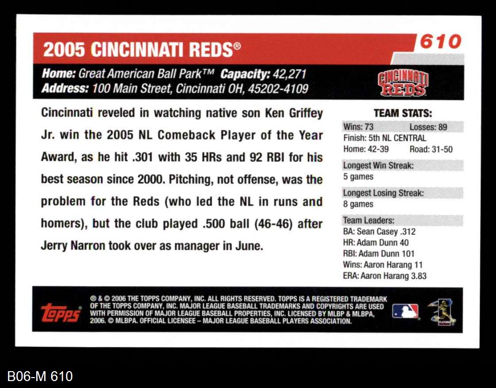 2006 Topps #610 Cincinnati Reds Team