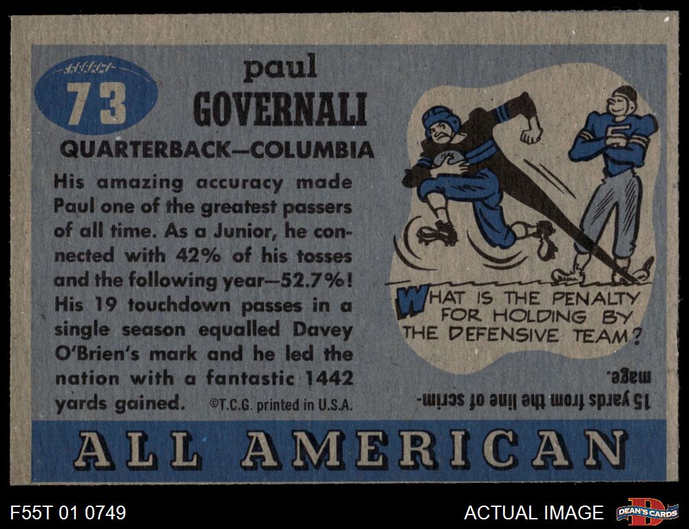 1955 Topps All-American Football Cards (509 available)Paul Governali (17 available)