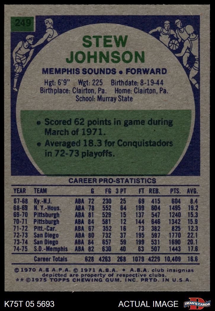 1975 Topps #249 Stew Johnson