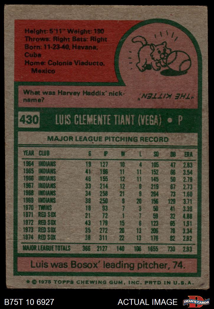 1975 Topps #430 Luis Tiant 2 - GOOD