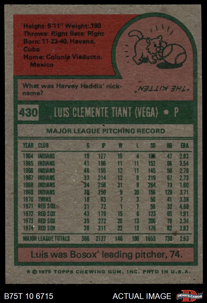 1975 Topps #430 Luis Tiant 4.5 - VG/EX+