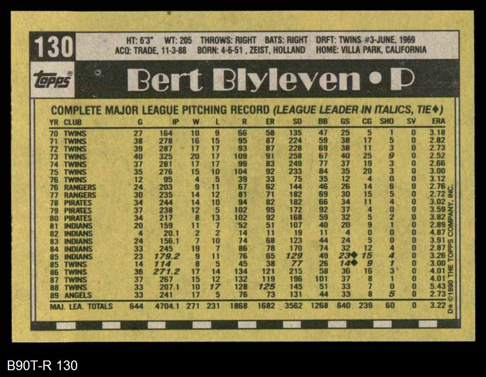 1990 Topps #130 Bert Blyleven