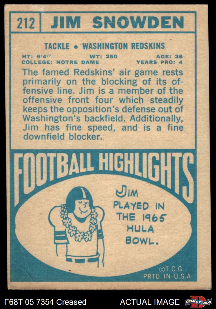 1968 Topps Football Cards (2,556 available)1968 Topps Redskins (138 available)
