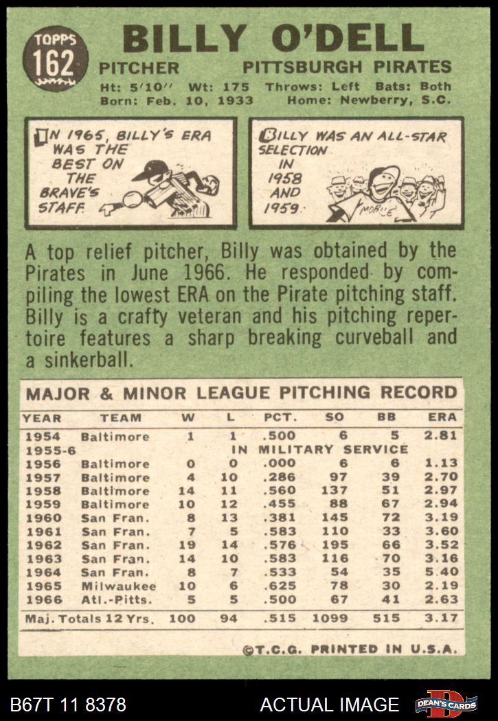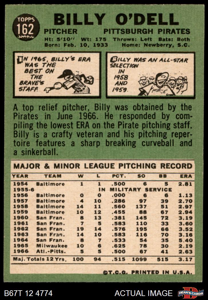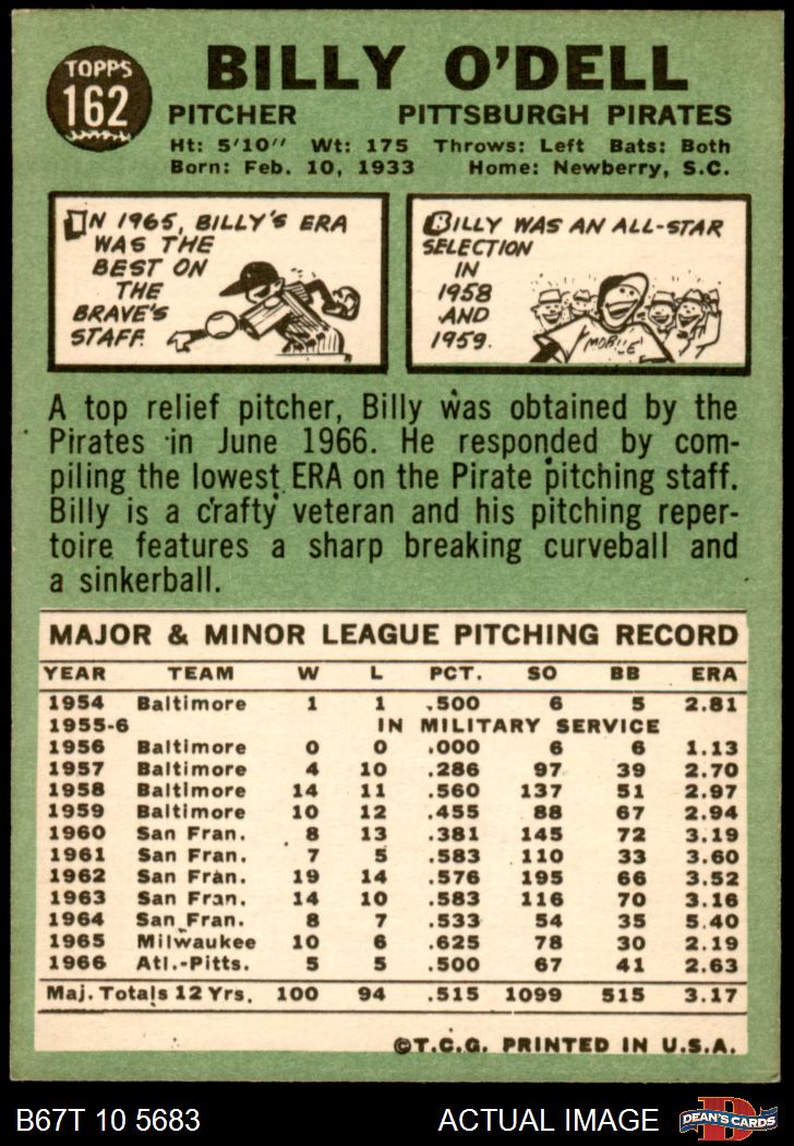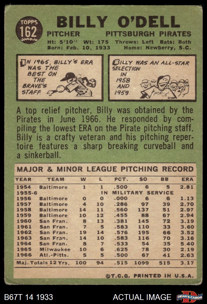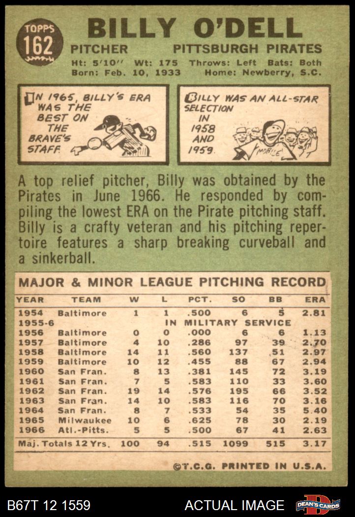 1967 Topps #162 Billy O'Dell