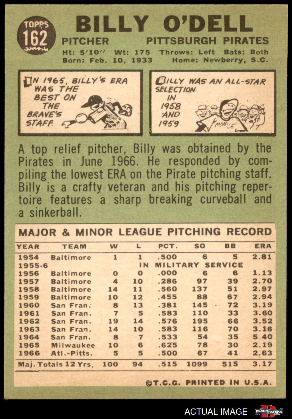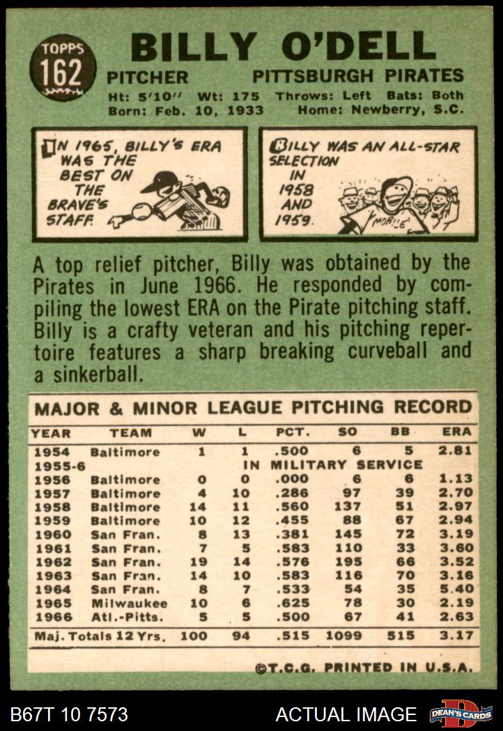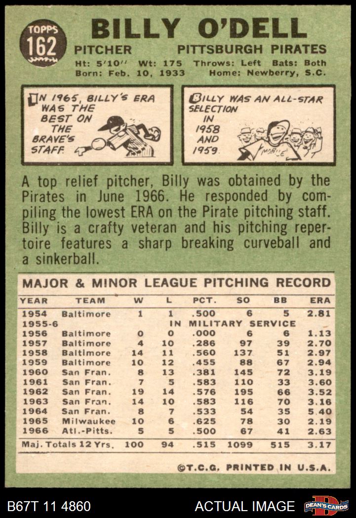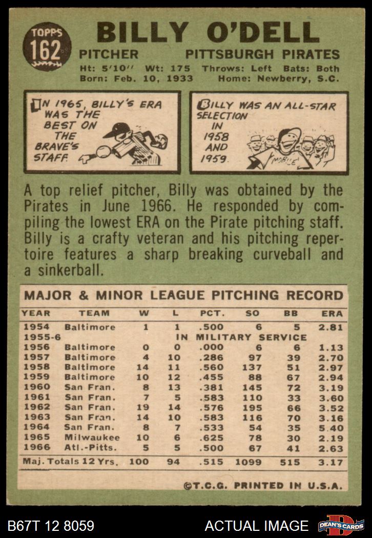 1967 Topps #162 Billy O'Dell