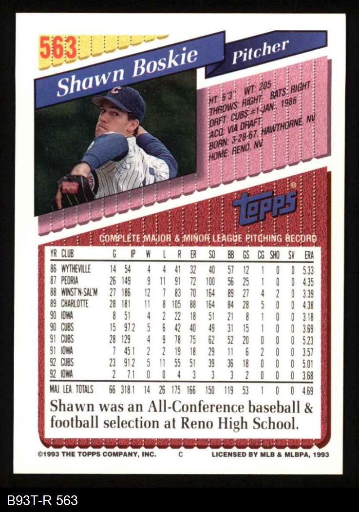 1993 Topps #563 Shawn Boskie 8 - NM/MT