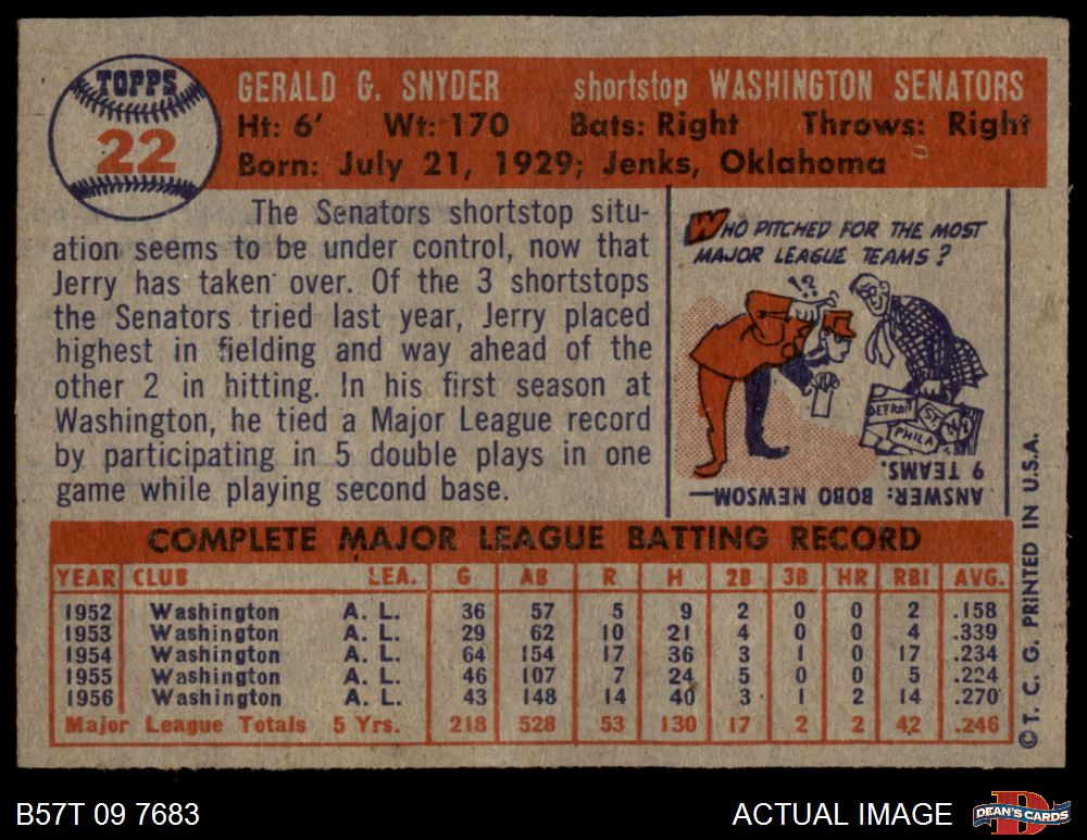 1957 Topps Baseball Cards (4,973 available)1957 Topps Senators (382 available)