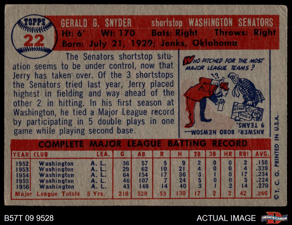 1957 Topps #22 Jerry Snyder 3 - VG