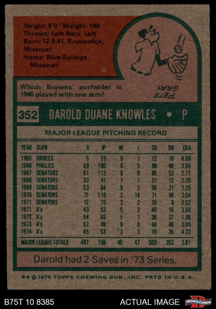 1975 Topps #352 Darold Knowles 4 - VG/EX