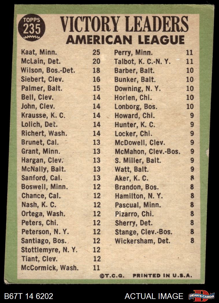 Jim Kaat / Denny McLain / Earl Wilson (20 available)