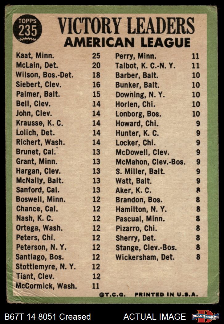 1967 Topps #235 AL Pitching Leaders