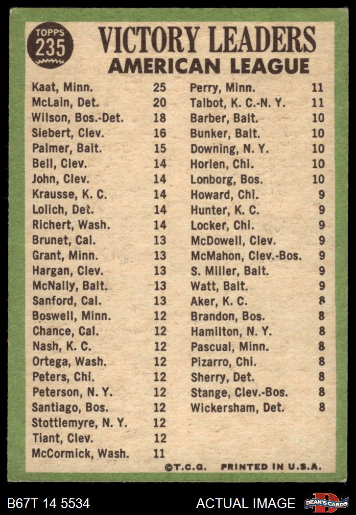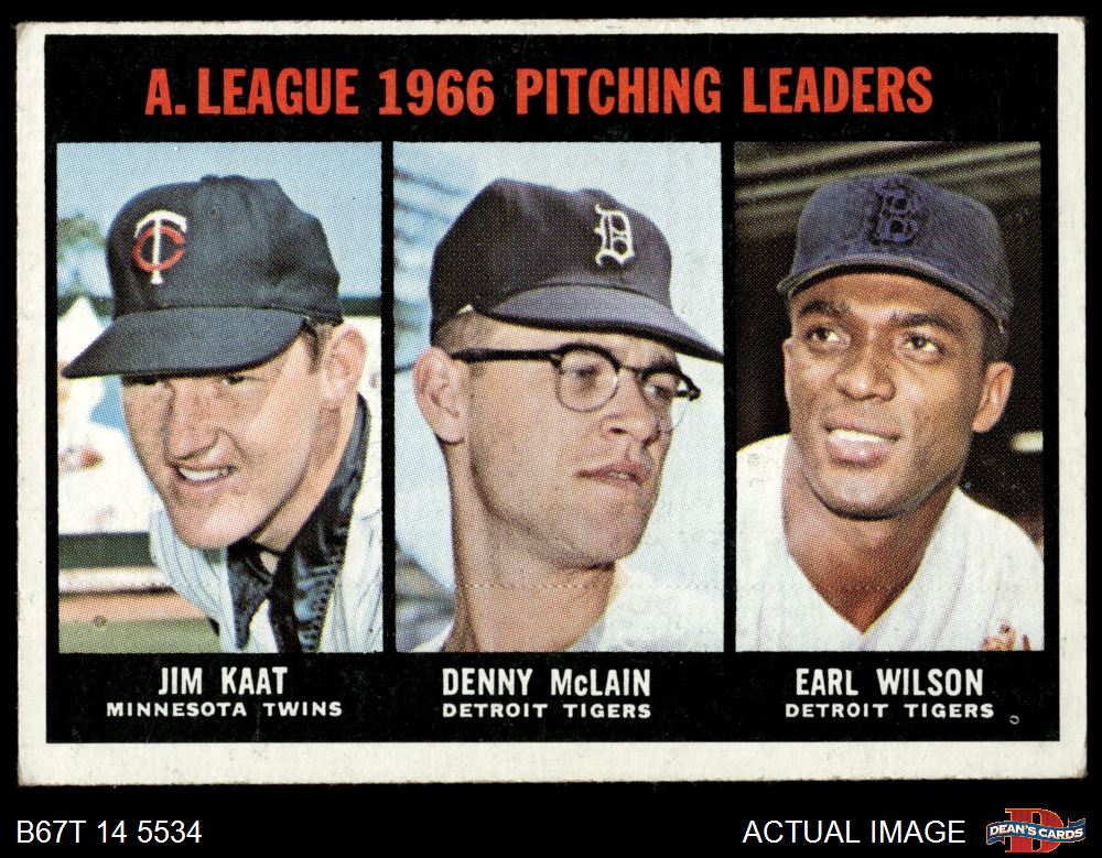1967 Topps #235 - Jim Kaat / Denny McLain / Earl Wilson AL Pitching Leaders 3 - VG