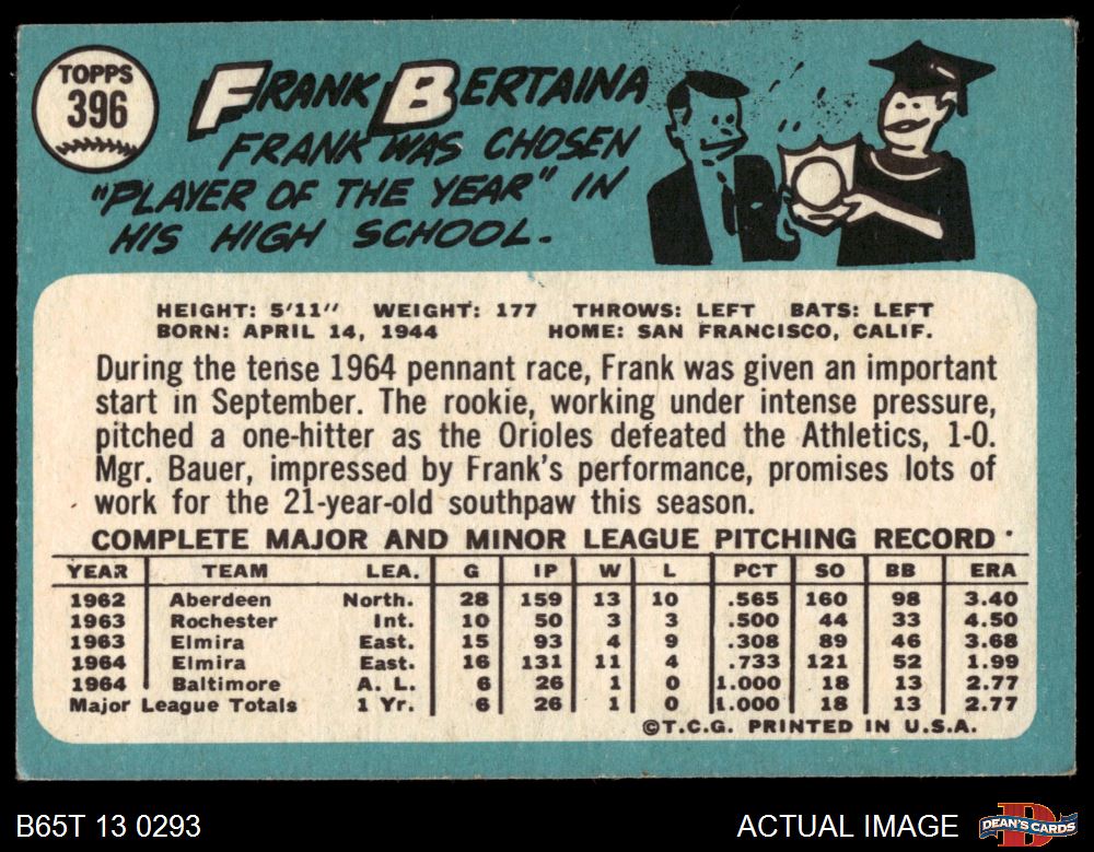 1965 Topps #396 Frank Bertaina 4 - VG/EX