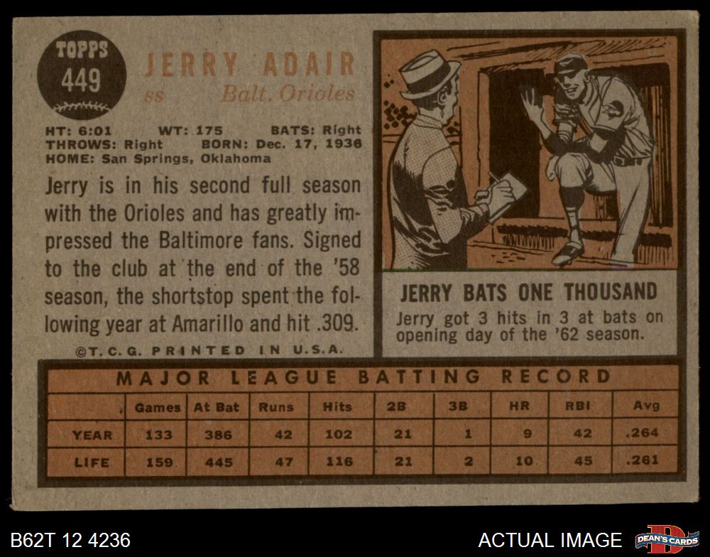 1962 Topps #449 Jerry Adair 2 - GOOD