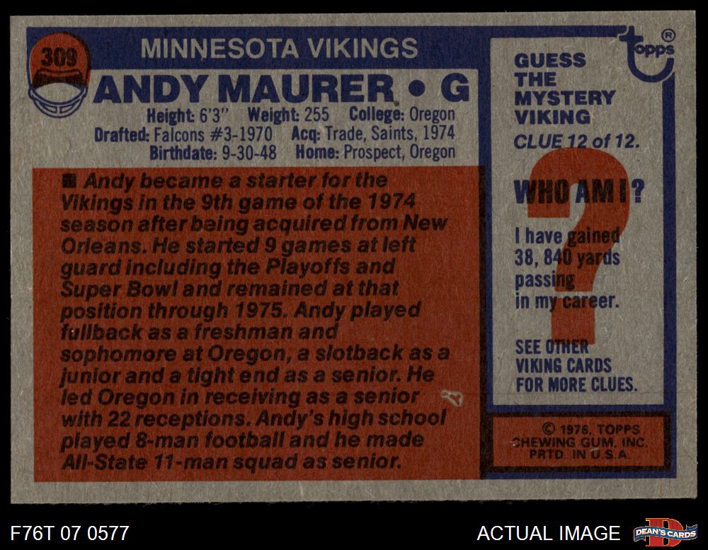 1976 Topps Football Cards (7,282 available)1976 Topps Vikings (388 available)