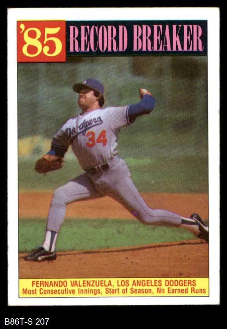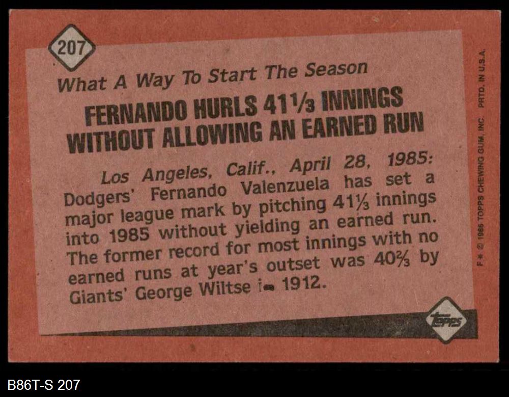 1986 Topps #207 - Fernando Valenzuela Record Breaker 8 - NM/MT