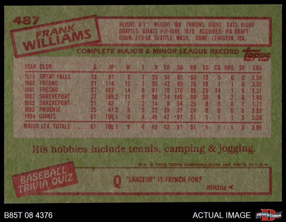 1985 Topps #487 Frank Williams 8 - NM/MT
