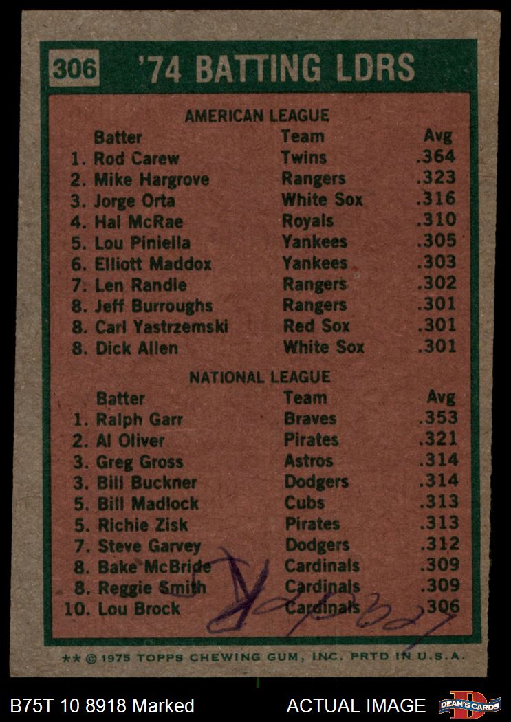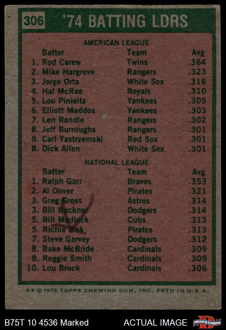 1975 Topps #306 - Rod Carew / Ralph Garr Batting Leaders 1.5 - FAIR