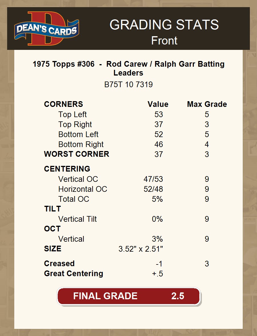 1975 Topps #306 - Rod Carew / Ralph Garr Batting Leaders 2.5 - GD+