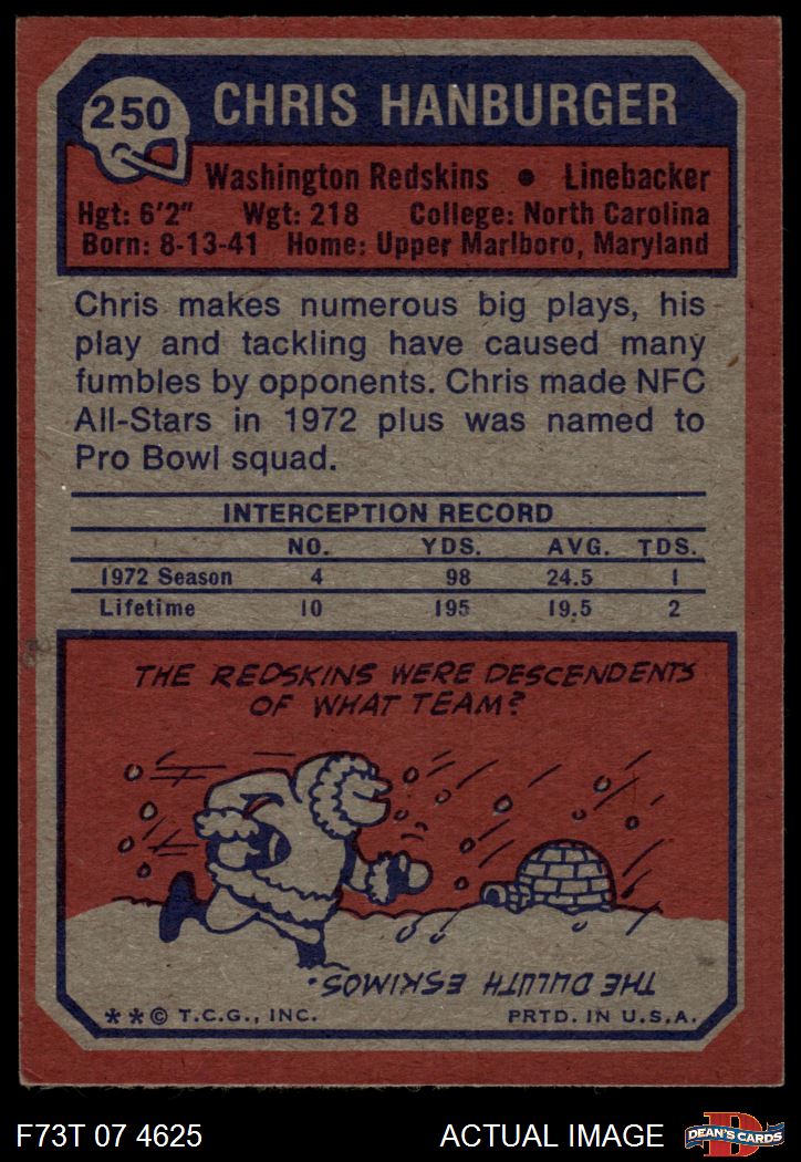 1973 Topps #250 Chris Hanburger Front Thumbnail