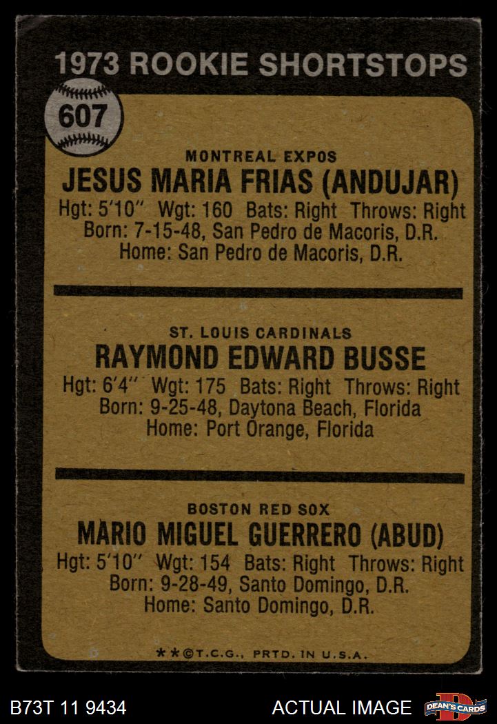 1973 Topps #607 Rookie Shortstops