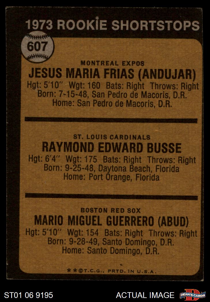 1973 Topps #607 - Ray Busse / Pepe Frias / Mario Guerrero Rookie Shortstops 5 - EX