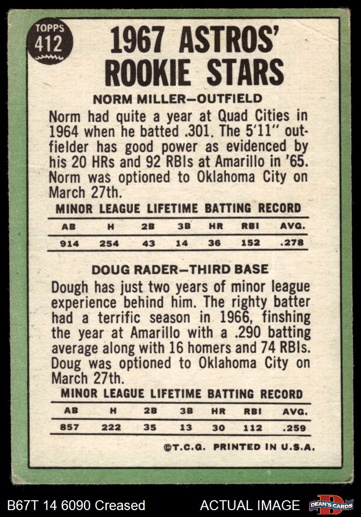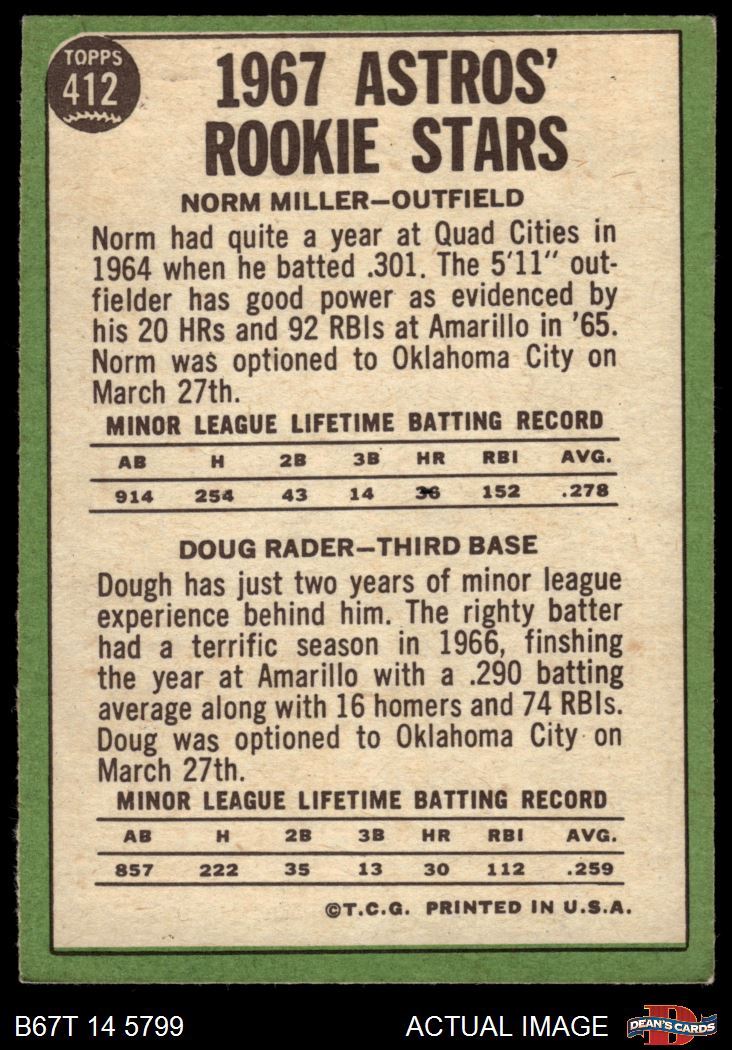 1967 Topps #412 - Doug Rader / Norm Miller Astros Rookies 2 - GOOD