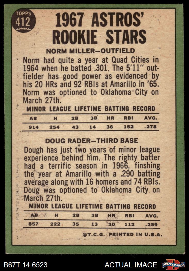 1967 Topps #412 - Doug Rader / Norm Miller Astros Rookies 3 - VG