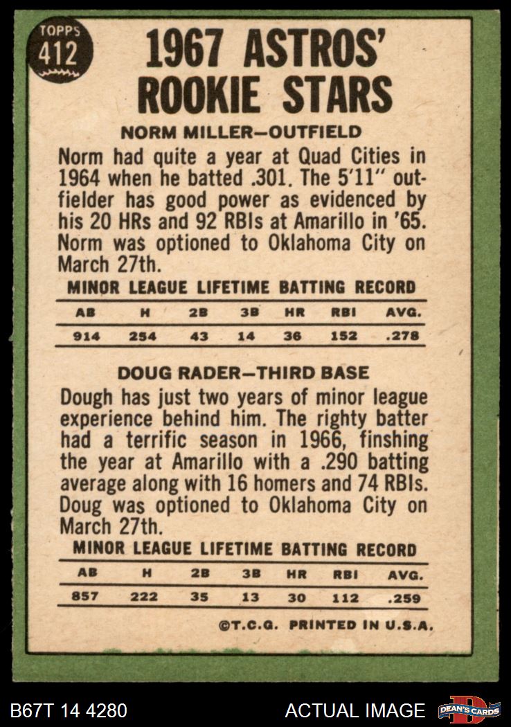 1967 Topps #412 - Doug Rader / Norm Miller Astros Rookies 4 - VG/EX