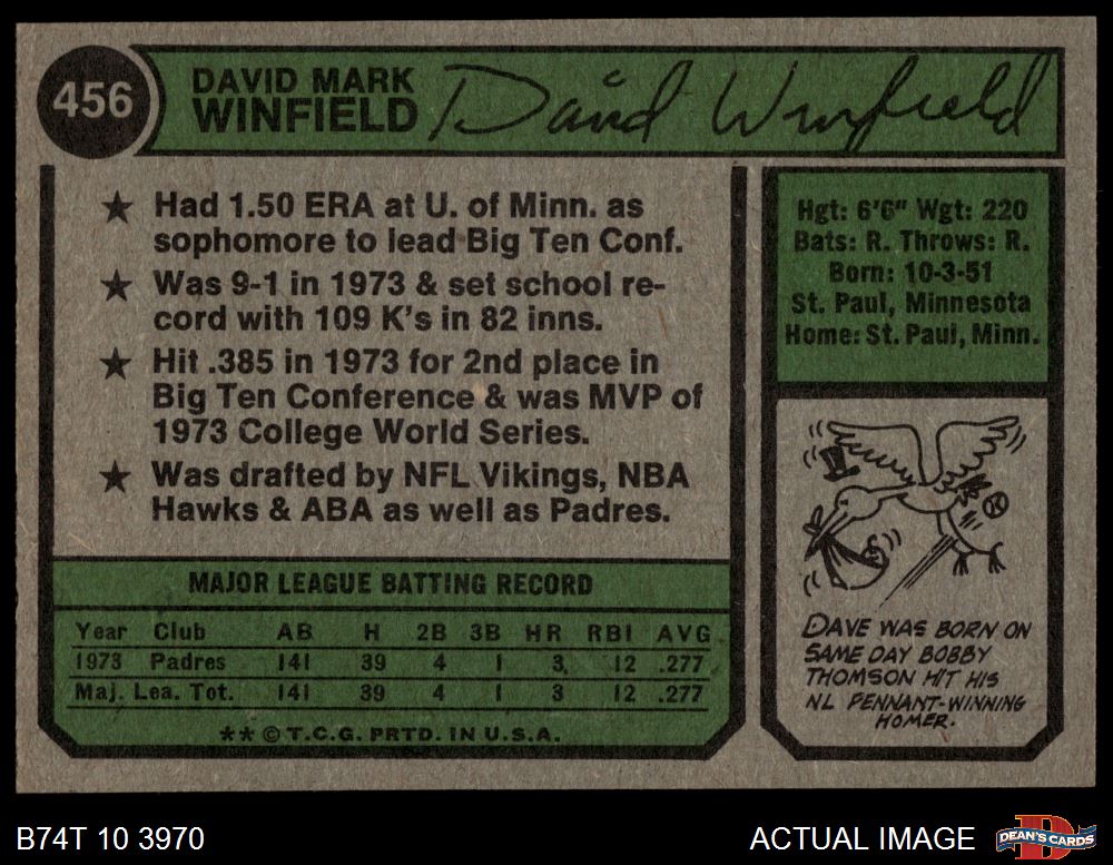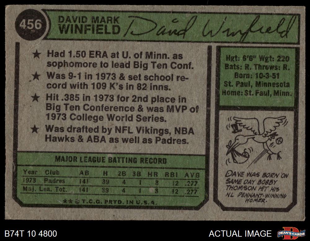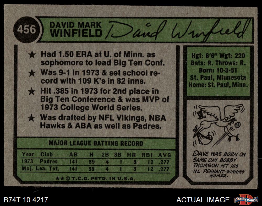 1974 Topps #456 Dave Winfield