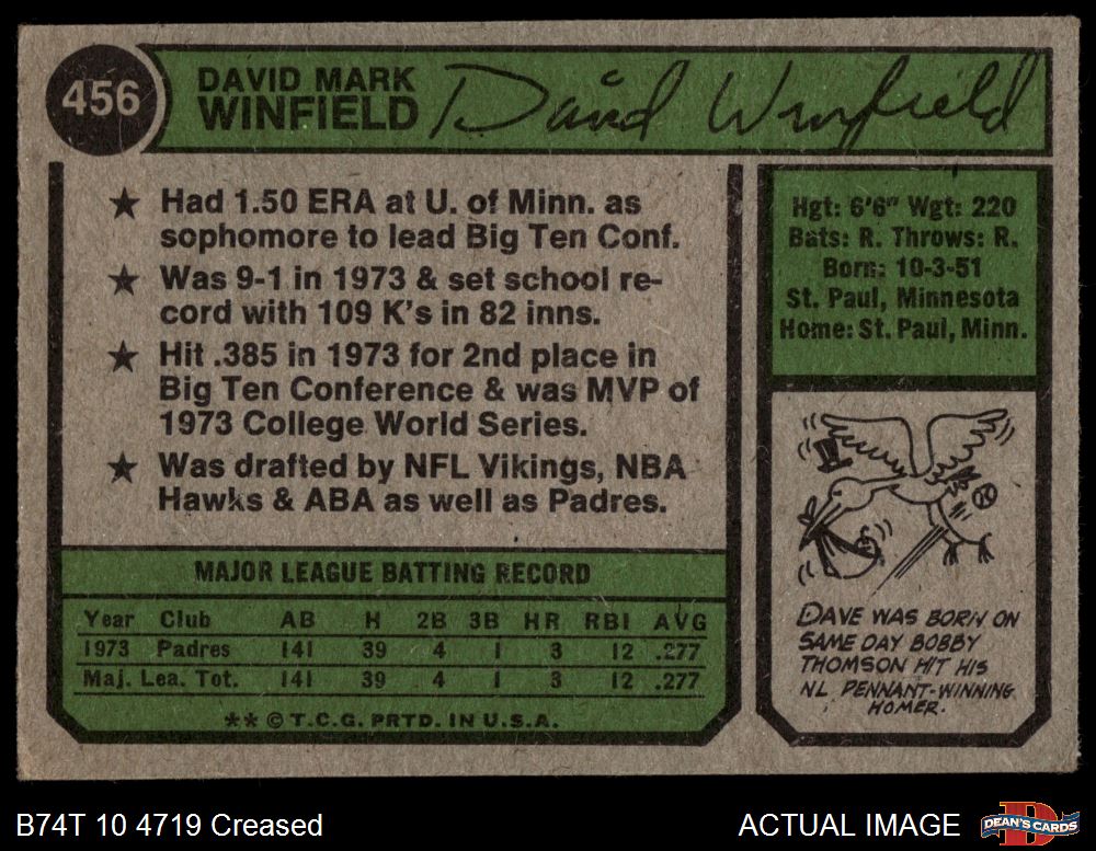 1974 Topps #456 Dave Winfield 3 - VG