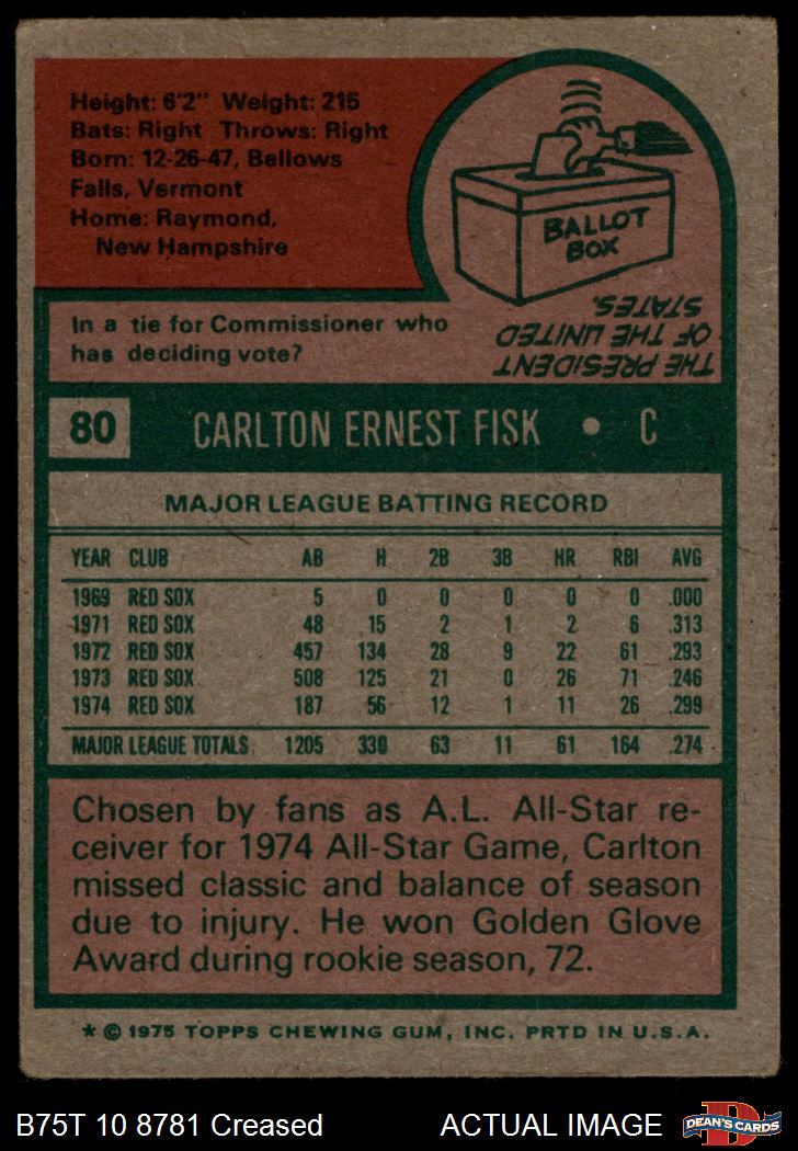 1975 Topps #80 Carlton Fisk 2.5 - GD+