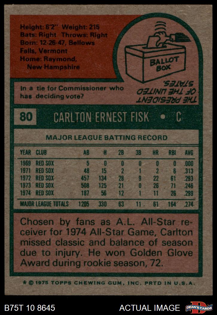 1975 Topps #80 Carlton Fisk 4.5 - VG/EX+
