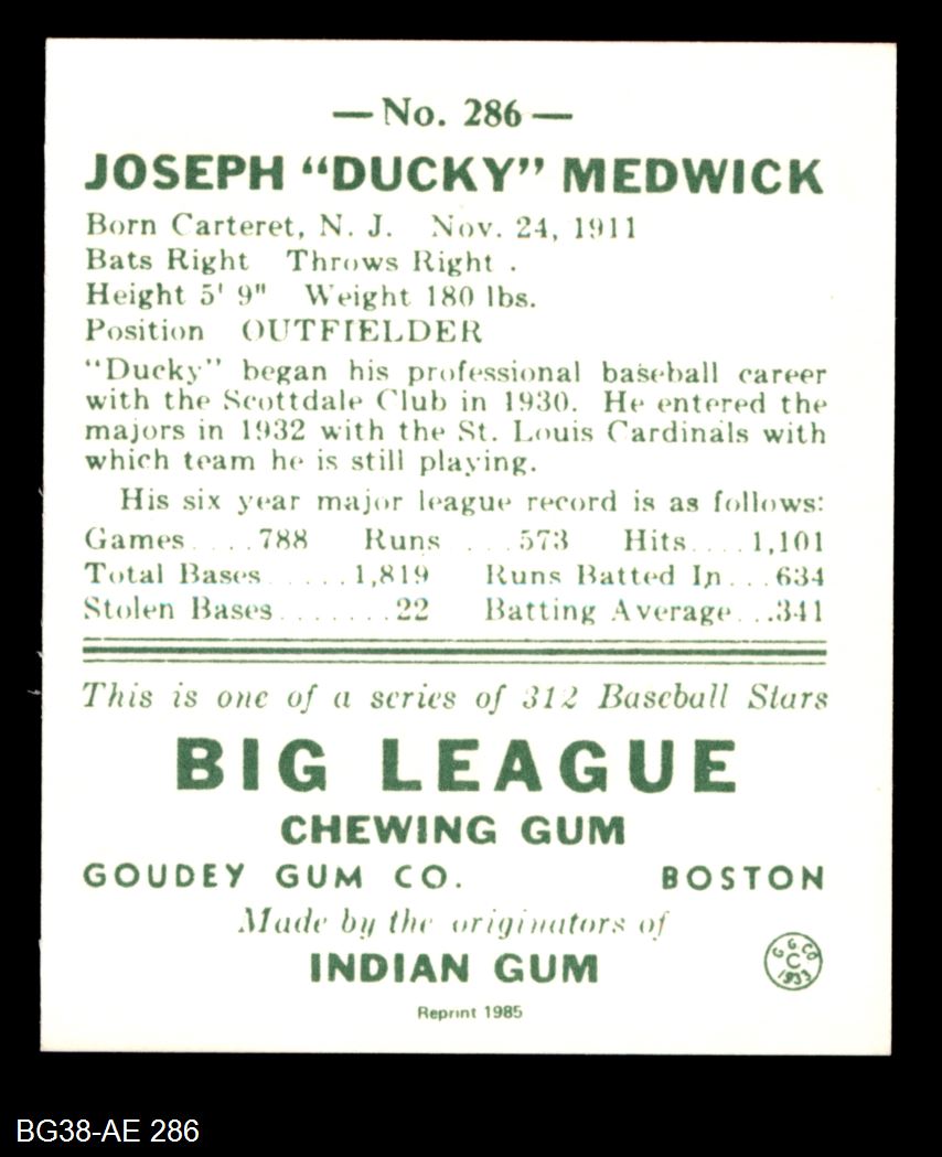 1938 Goudey Heads-Up Reprint #286 Ducky Medwick 8 - NM/MT