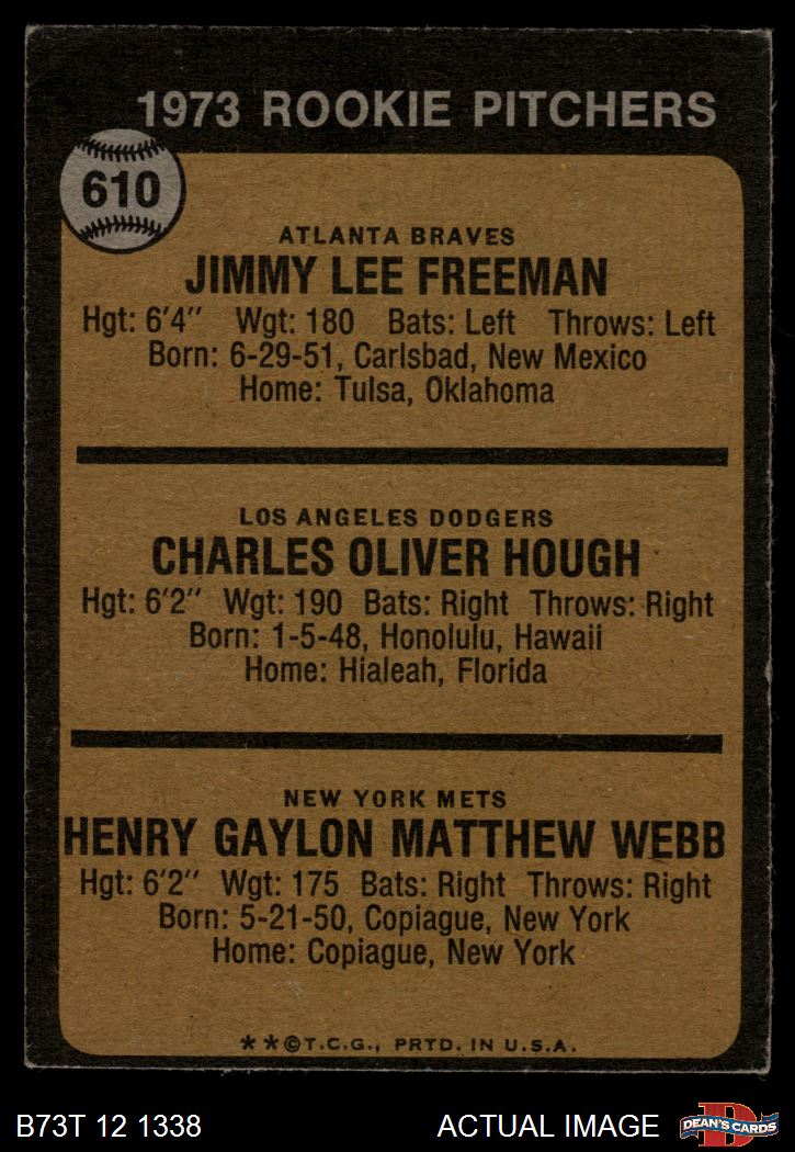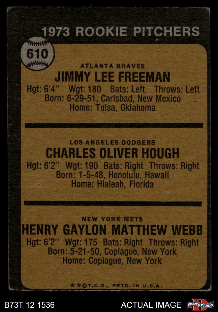 1973 Topps #610 - Charlie Hough / Jimmy Freeman / Hank Webb Rookie Pitchers 2 - GOOD
