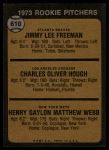 1973 Topps #610 - Charlie Hough / Jimmy Freeman / Hank Webb Rookie Pitchers 3 - VG