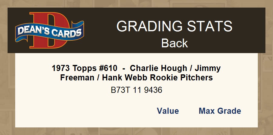 1973 Topps #610 - Charlie Hough / Jimmy Freeman / Hank Webb Rookie Pitchers 4 - VG/EX