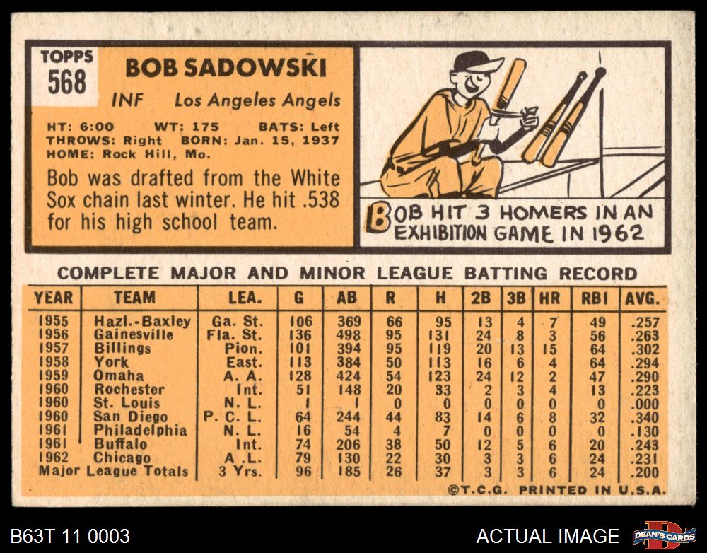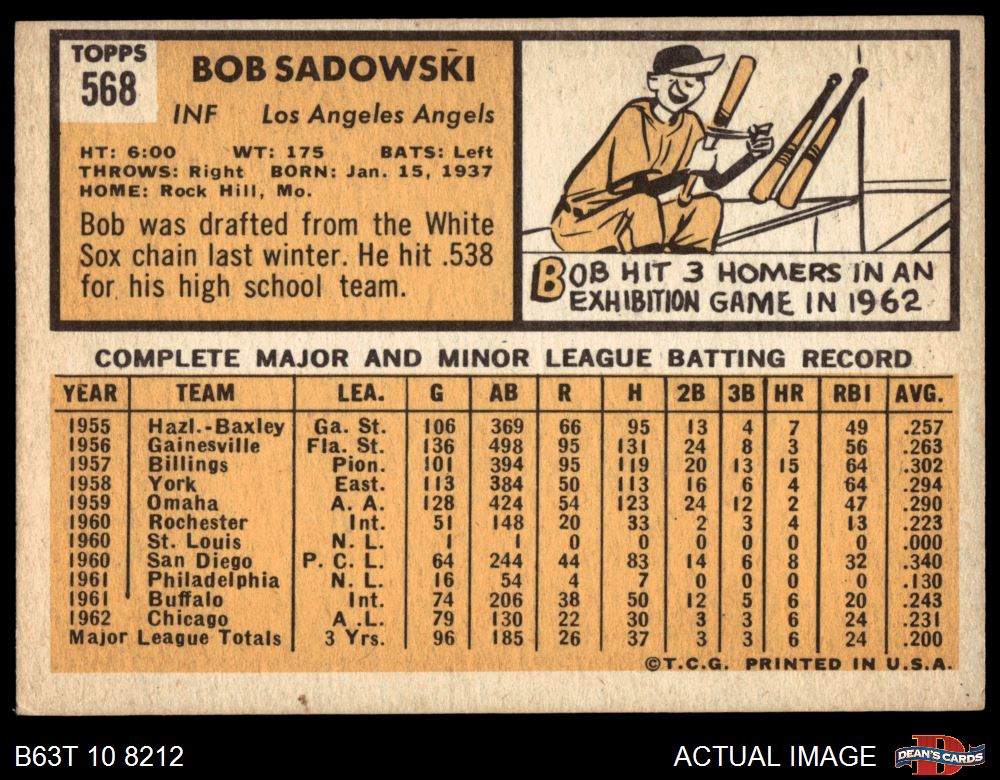 1963 Topps #568 Bob Sadowski