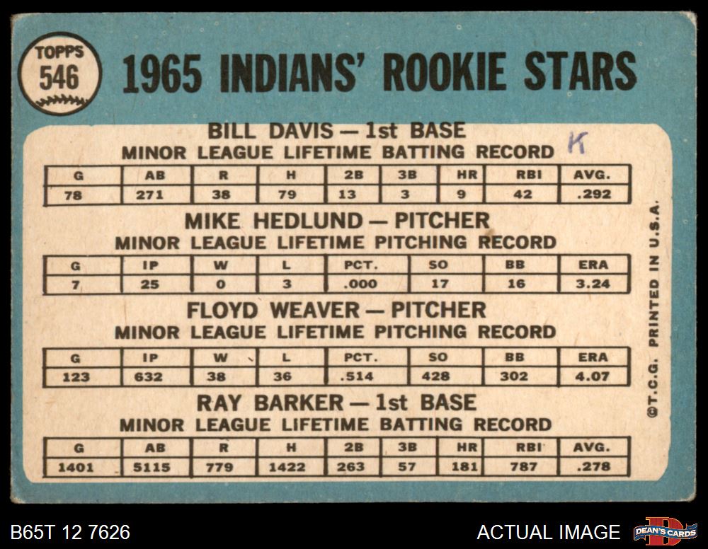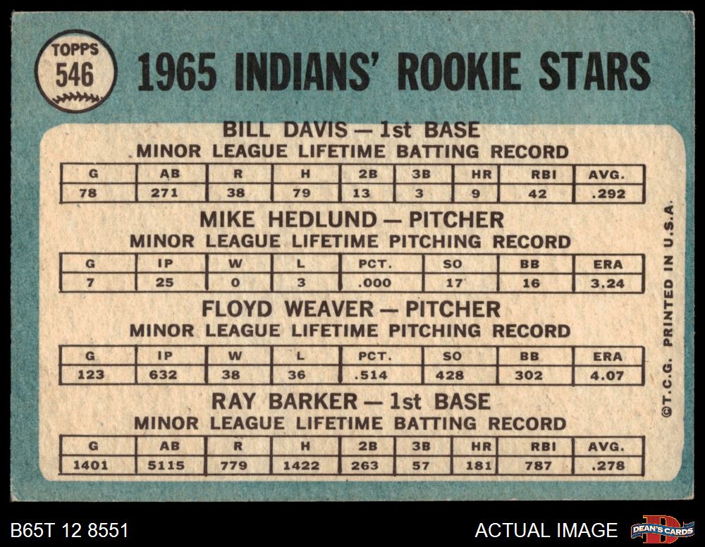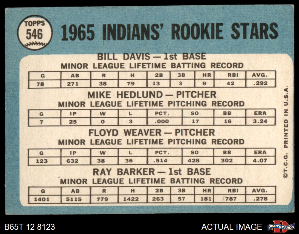1965 Topps #546 - Bill Davis / Floyd Weaver / Ray Barker / Mike Hedlund Indians Rookies 2 - GOOD