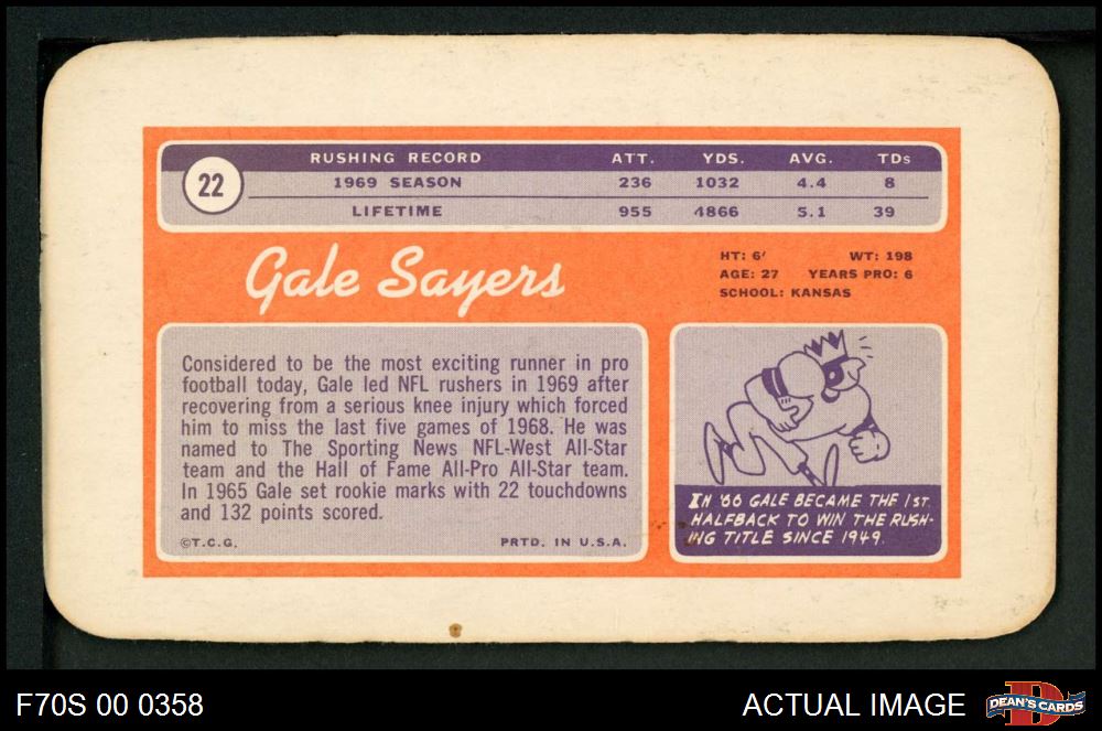 1970 Topps Super #22 Gale Sayers 4 - VG/EX