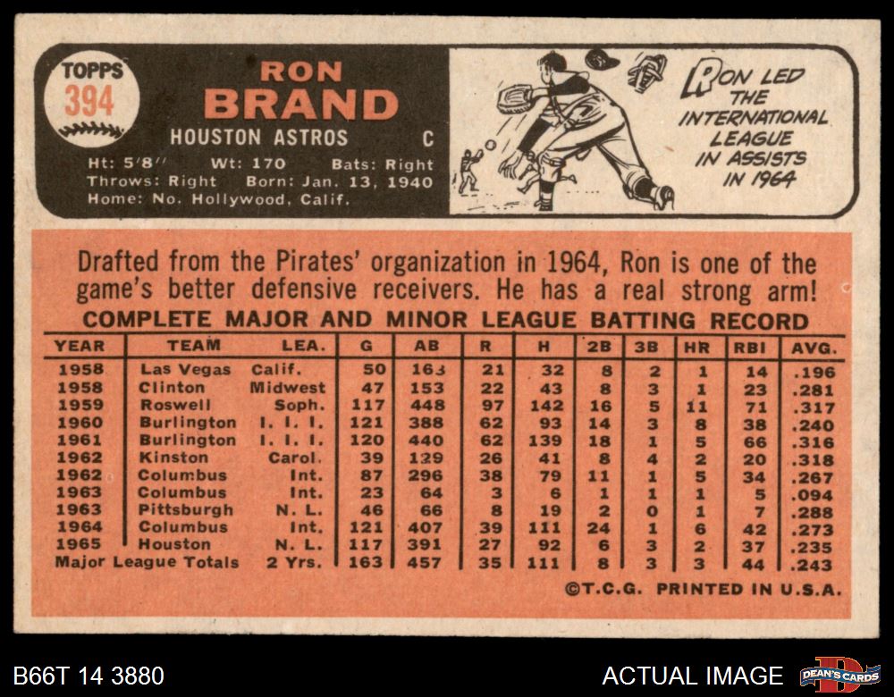1966 Topps #394 Ron Brand 5 - EX