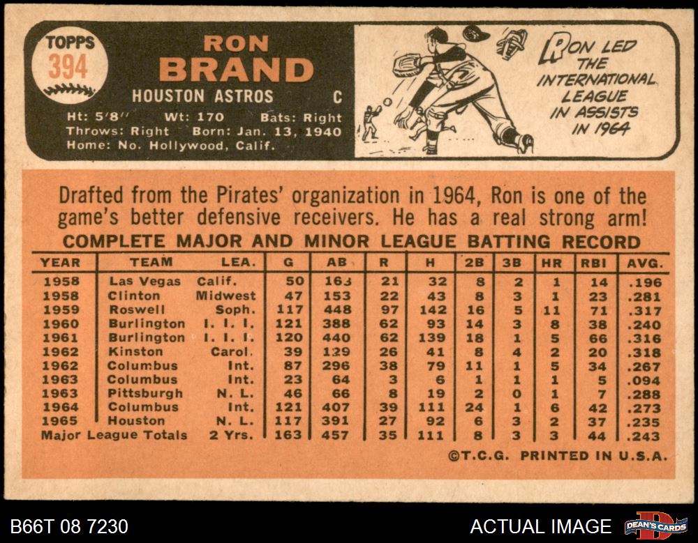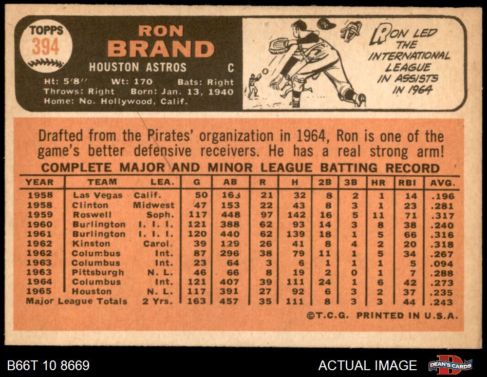 1966 Topps #394 Ron Brand 6 - EX/MT