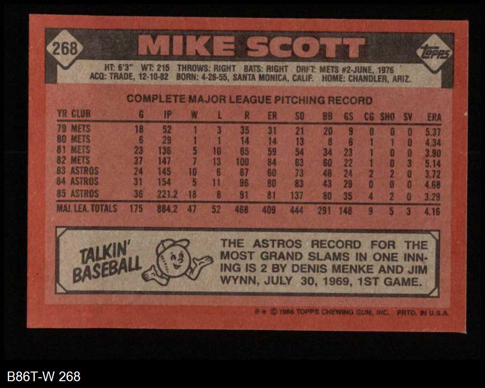 1986 Topps #268 Mike Scott 8 - NM/MT