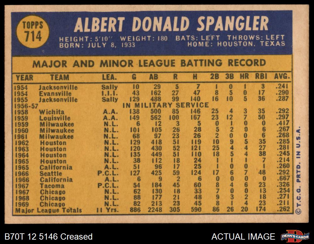1970 Topps #714 Al Spangler 3 - VG