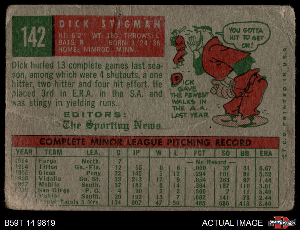 1959 Topps #142 Dick Stigman AUTHENTIC