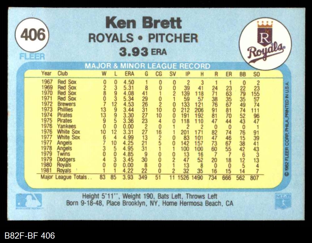 1982 Fleer #406 Ken Brett 8 - NM/MT