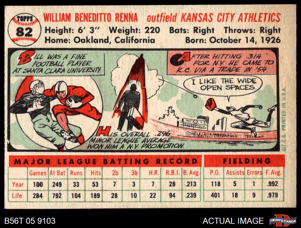 1956 Topps #82 Bill Renna 3 - VG