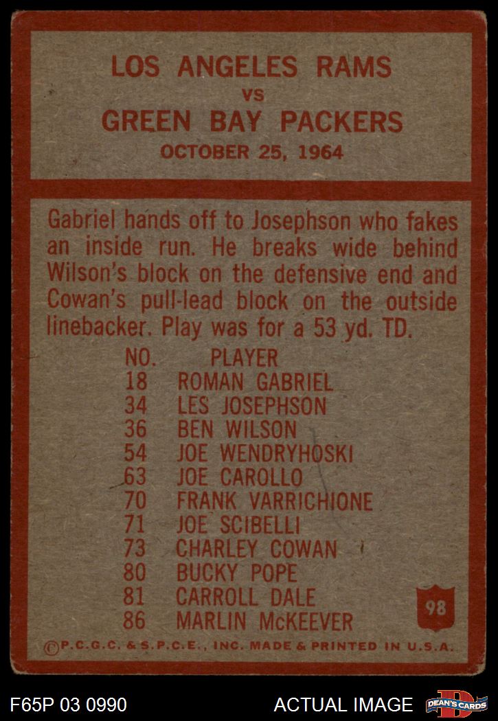 1965 Philadelphia #98 - Harland Svare Los Angeles Rams Play 2 - GOOD