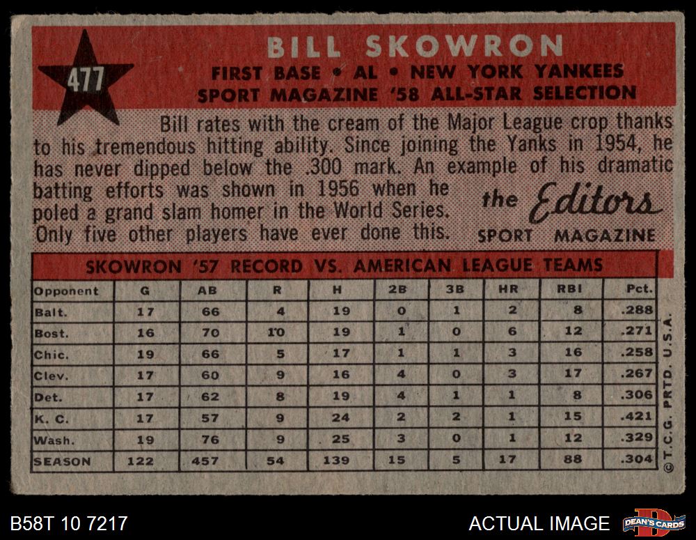 1958 Topps #477 - Bill Skowron All-Star 2 - GOOD